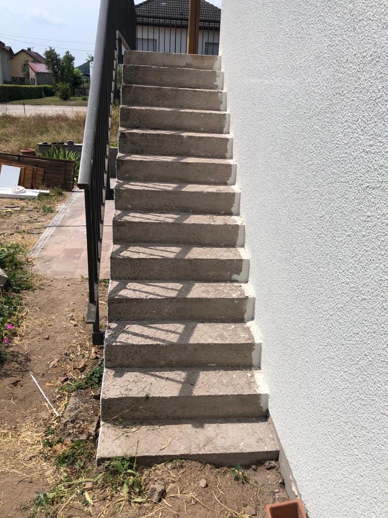 Découvrez notre rénovation réussie d'un escalier extérieur, avant et après. L'escalier d'origine en mauvais état a été transformé en un nouvel escalier esthétique et sécurisé, grâce à notre processus de rénovation en plusieurs étapes.